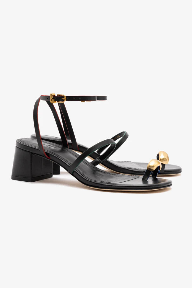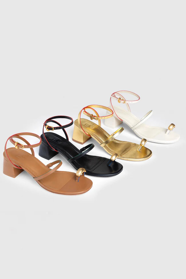 You asked, we answered! The Biarritz Block is newer, heeled version of the sandal that broke the internet. Named for the luxe French seaside escape, this new silhouette features a sturdy stacked block heel, bold gold hardware, and soft leather straps that wrap around the ankle for a leg-lengthening—and eye-catching—effect.