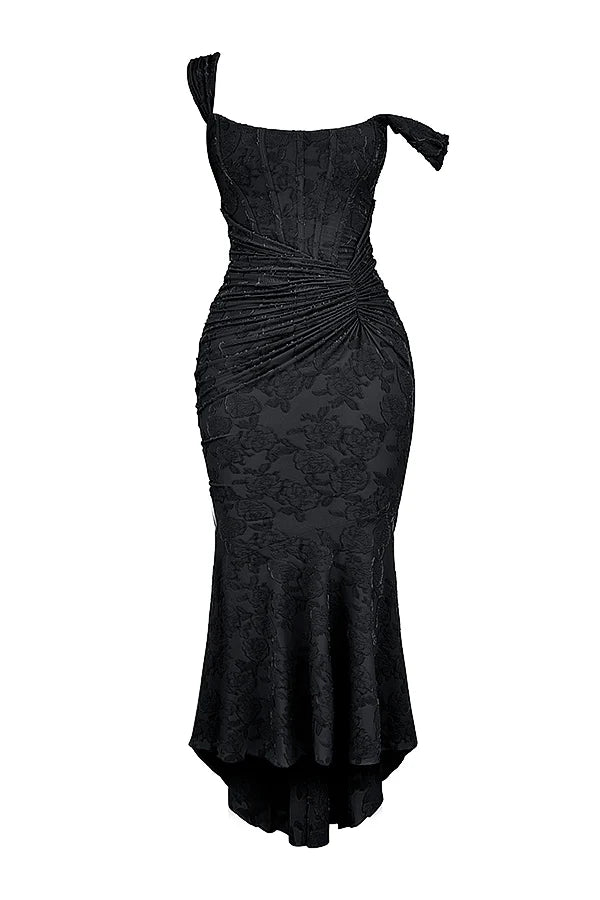 The Carisia maxi dress embodies timeless elegance with delicate lace structure and a figure-flattering fit. Perfect for weddings, garden parties, or any moment calling for subtle refinement.
